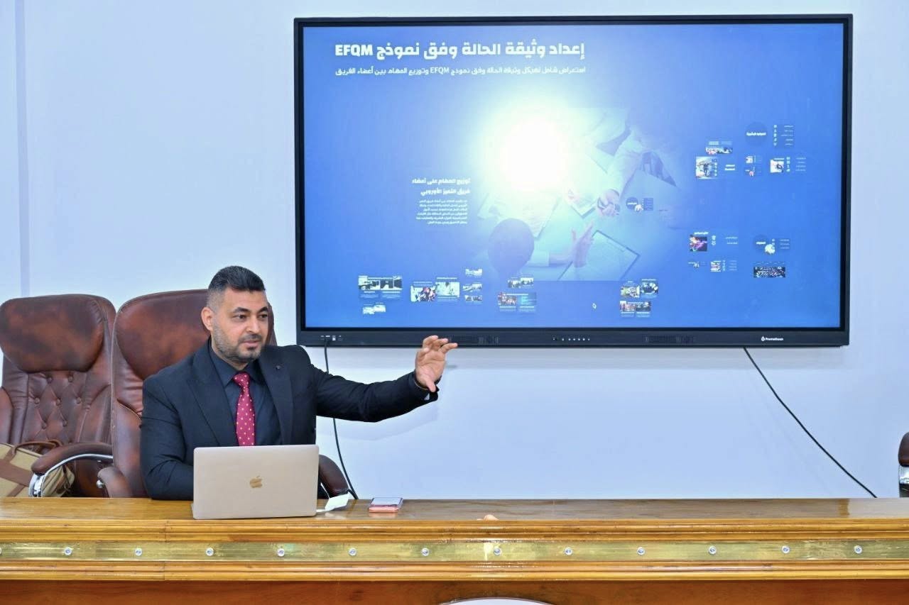 شهد الاجتماع تقديم محاضرة علمية متخصصة تناولت الجوانب التطبيقية لنموذج التميّز الأوروبي (EFQM)، جرى خلالها استعراض آليات العمل وخطوات التنفيذ الميداني لتطبيق معايير التميّز المؤسسي على وفق هذا النموذج، فضلاً عن مناقشة متطلبات المرحلة المقبلة. كما تم خلال الاجتماع توزيع المهام والأدوار بين أعضاء الفريق تمهيدًا للشروع الفعلي بتطبيق المشروع على مستوى تشكيلات الجامعة.